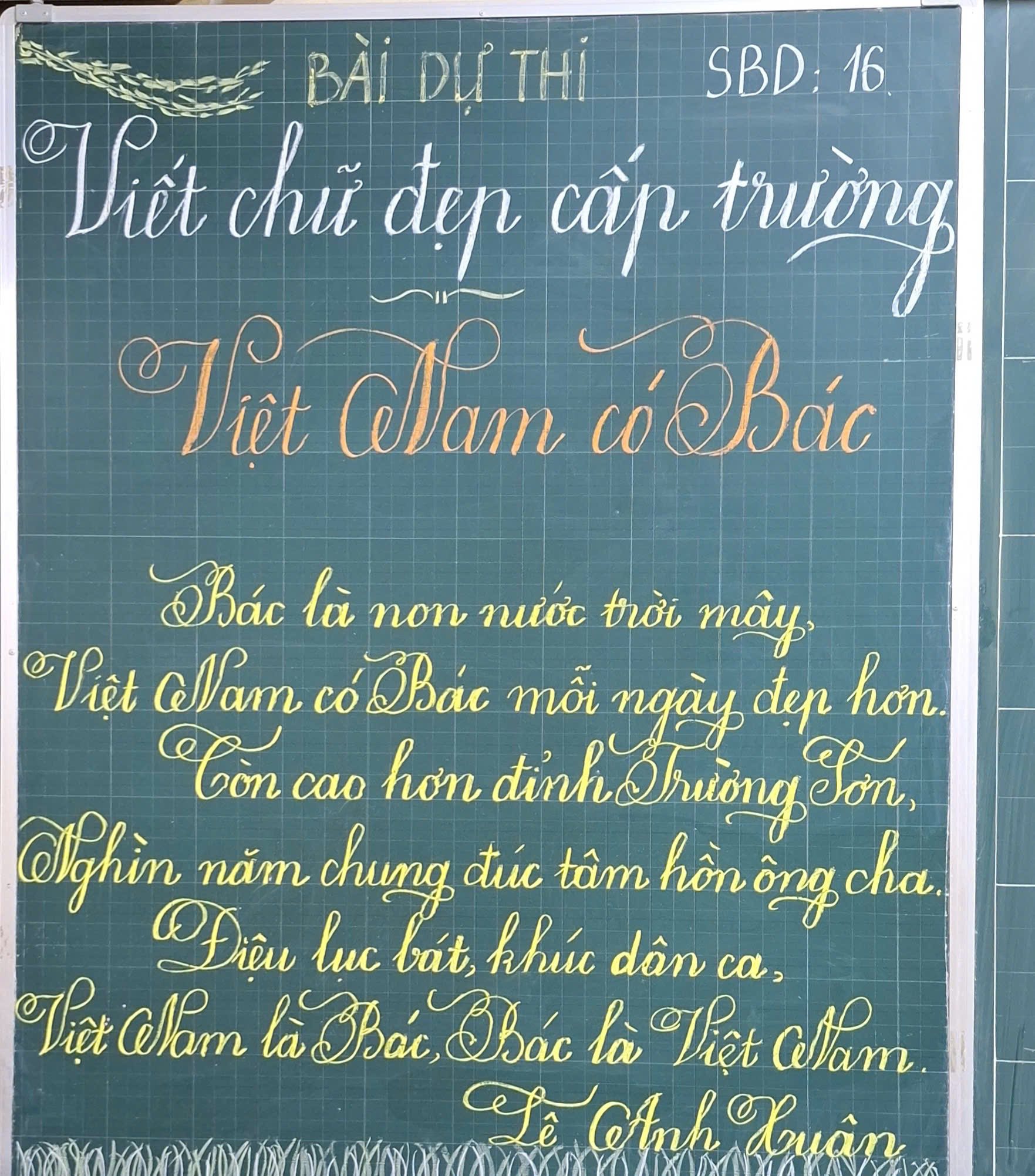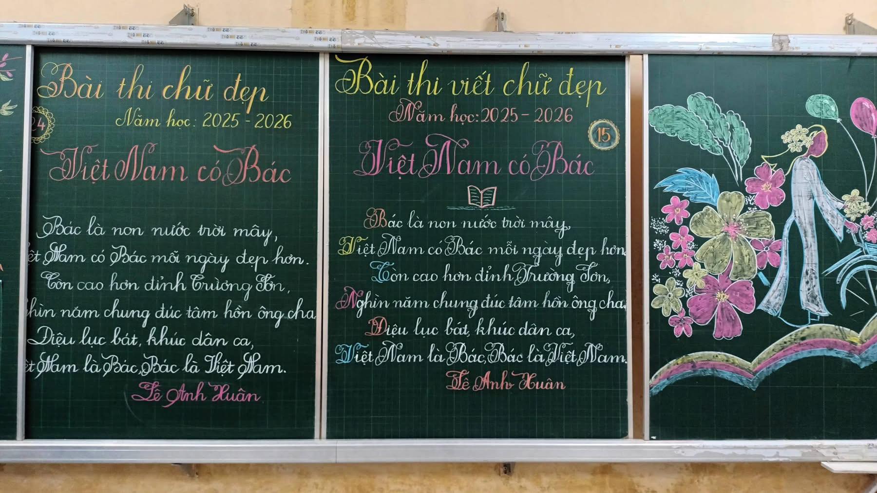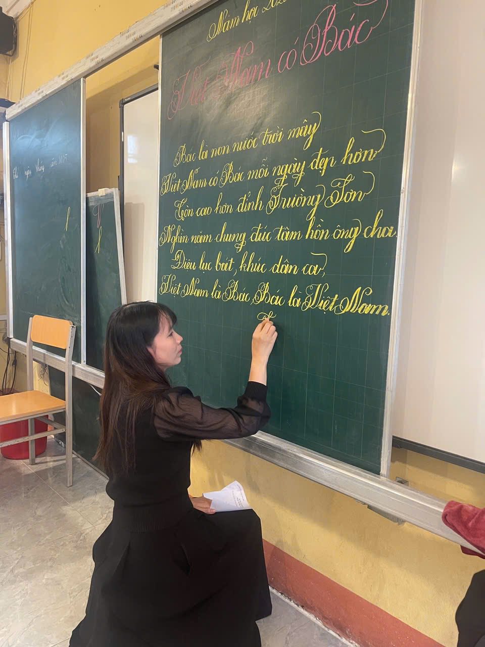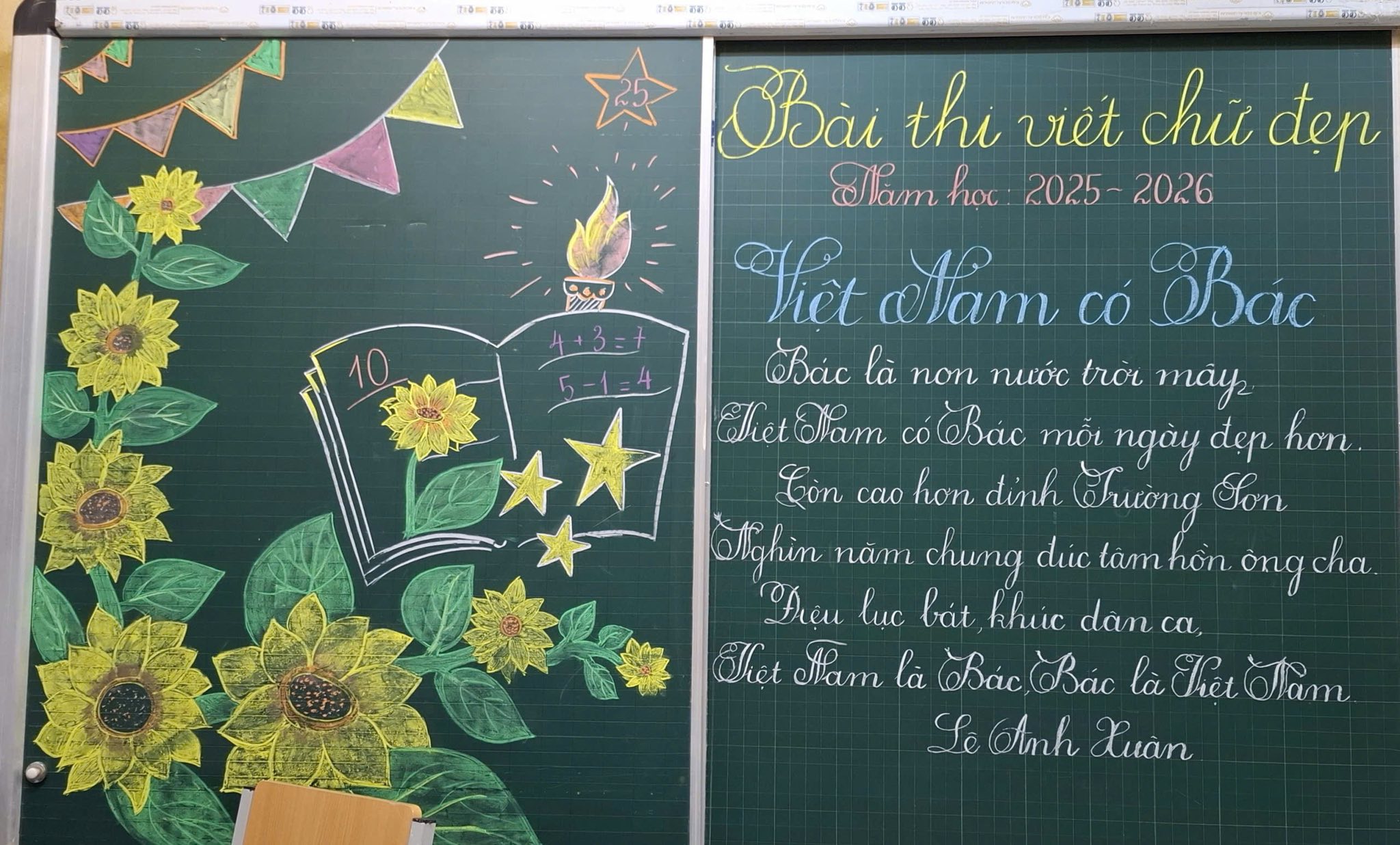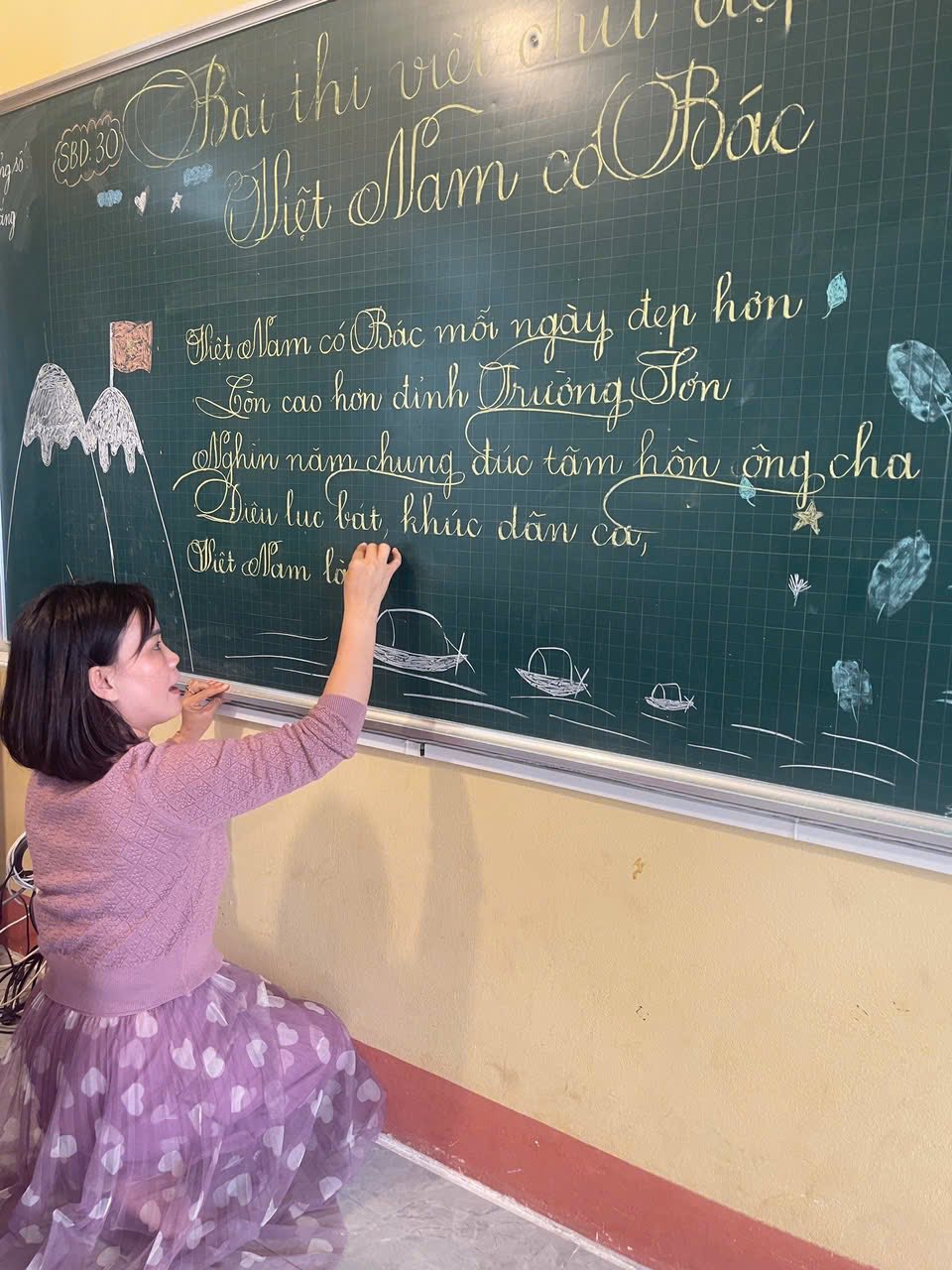 Song song đó, phần thi của các thầy cô giáo cũng để lại ấn tượng sâu sắc. Nội dung dự thi gồm hai phần: viết bảng và viết bài trên giấy theo mẫu quy định của nhà trường. Qua từng nét bút, các giáo viên đã truyền tải vẻ đẹp của chữ viết – một giá trị truyền thống luôn được đề cao trong môi trường giáo dục tiểu học. Nhiều bài thi nổi bật với bố cục hài hòa, trình bày khoa học và nét chữ tròn trịa, sáng rõ.