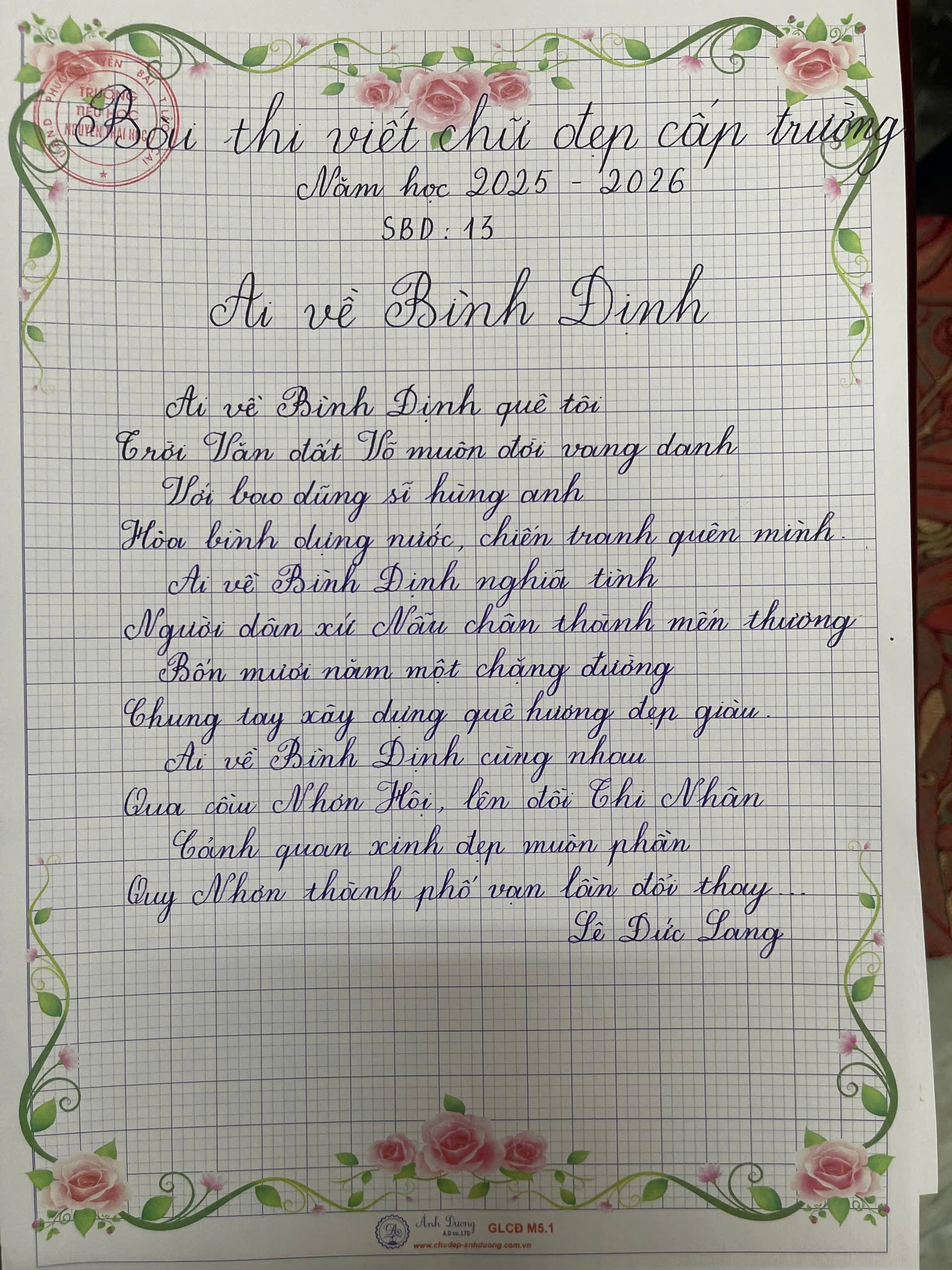 Cuộc thi không chỉ là sân chơi bổ ích để giáo viên trau dồi kỹ năng nghề nghiệp, mà còn góp phần lan tỏa phong trào “Giữ vở sạch – Rèn chữ đẹp” trong toàn trường. Đây cũng là dịp để nhà trường ghi nhận sự cố gắng của đội ngũ giáo viên trong việc làm gương cho học sinh trong từng nét chữ, câu văn hàng ngày